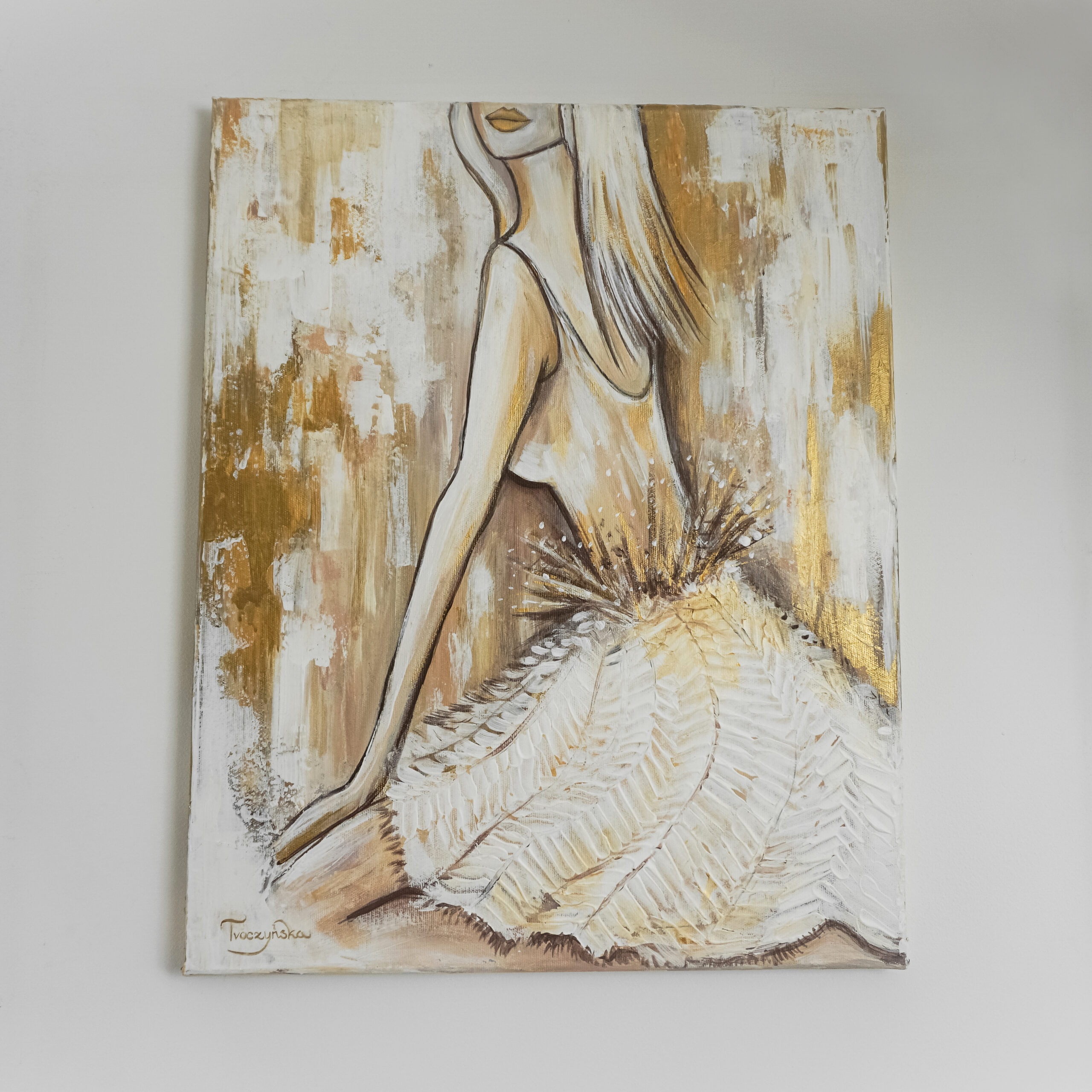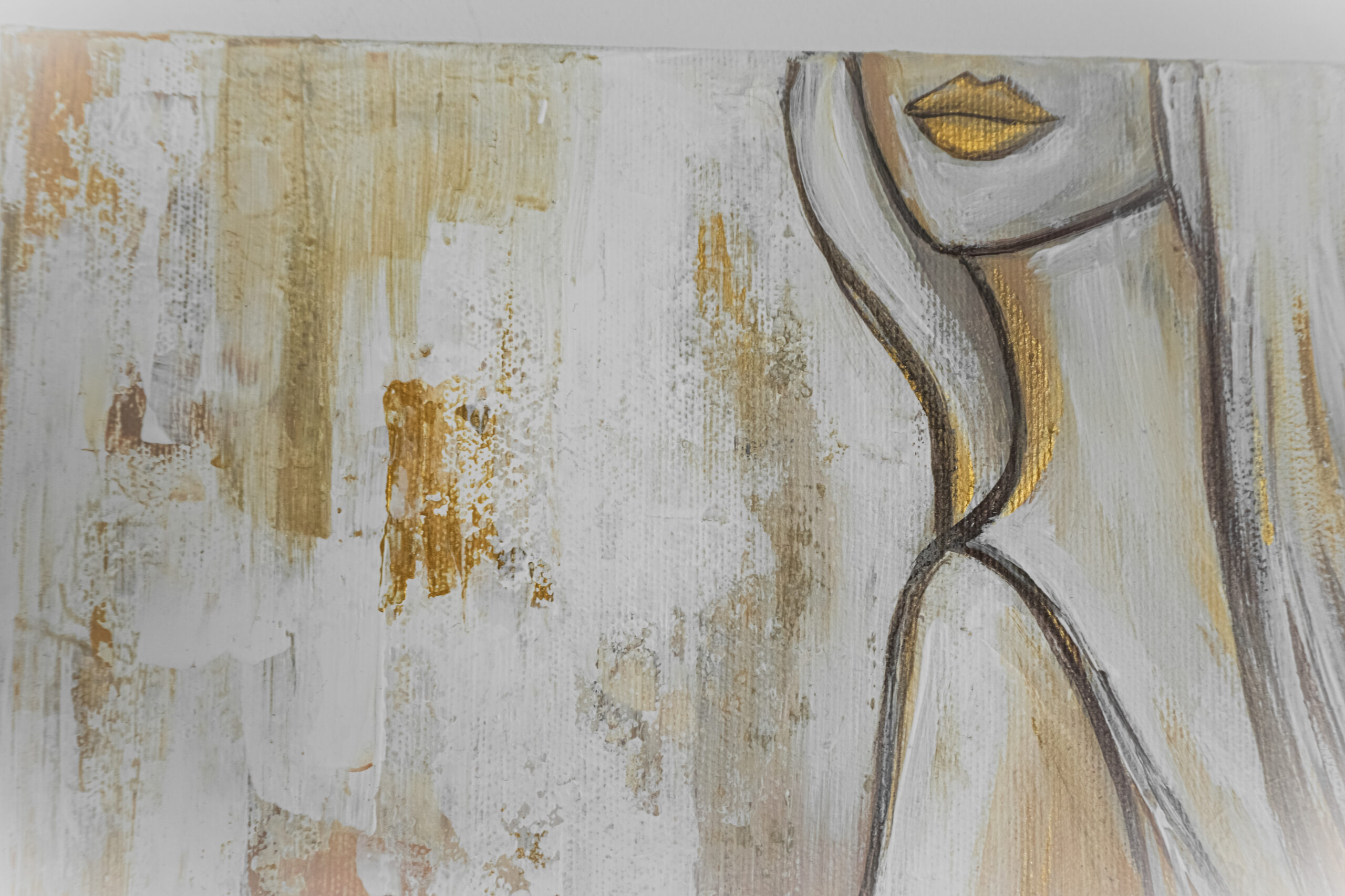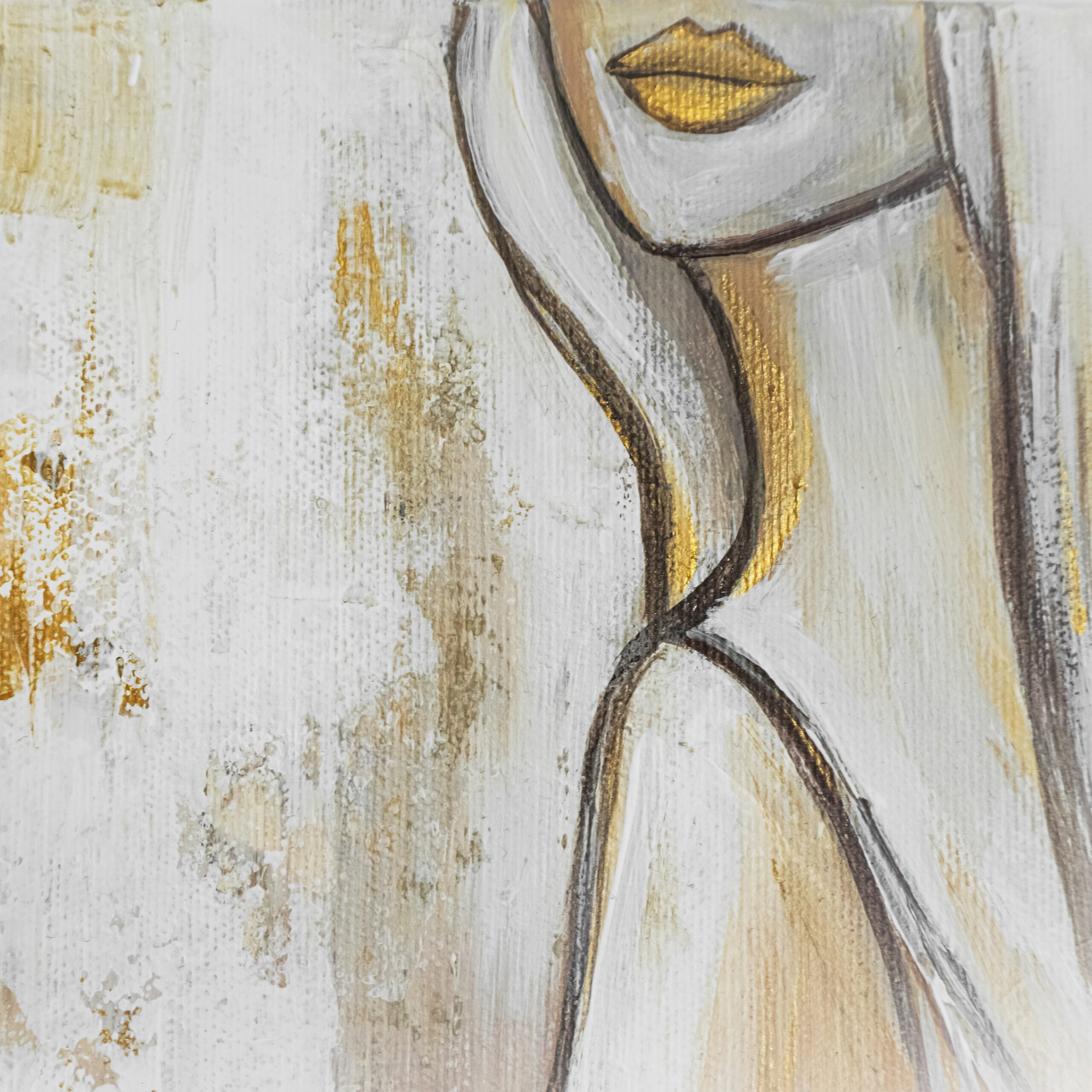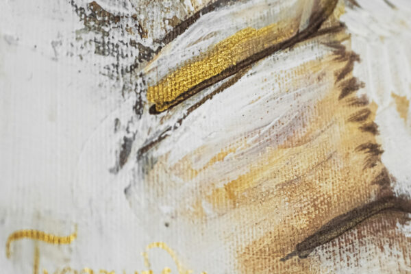 Obraz „Kobieta w odcieniach złota” wykonany farbami akrylowymi na płótnie bawełnianym.