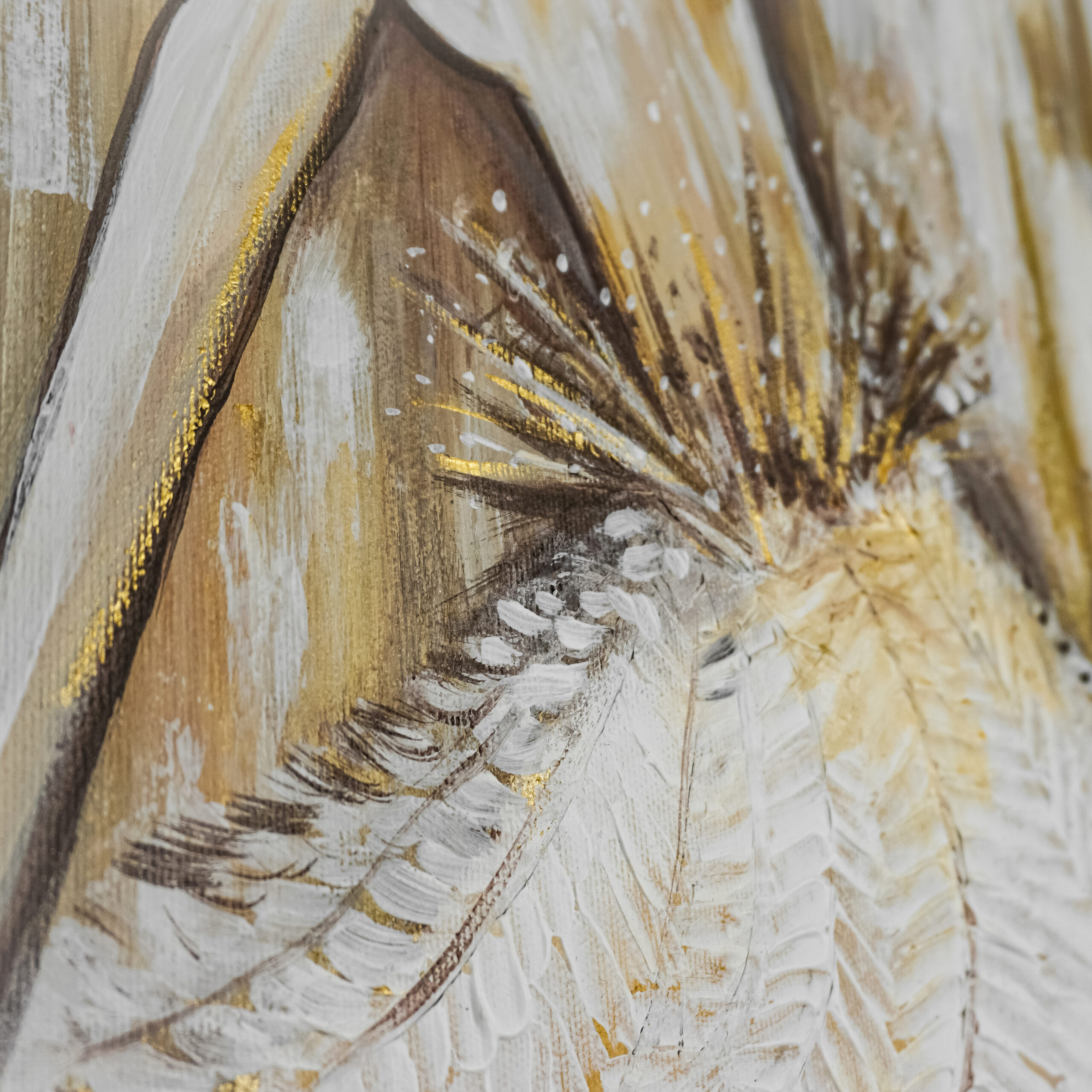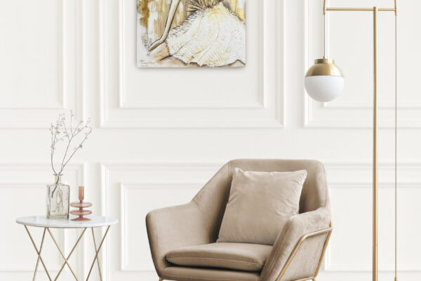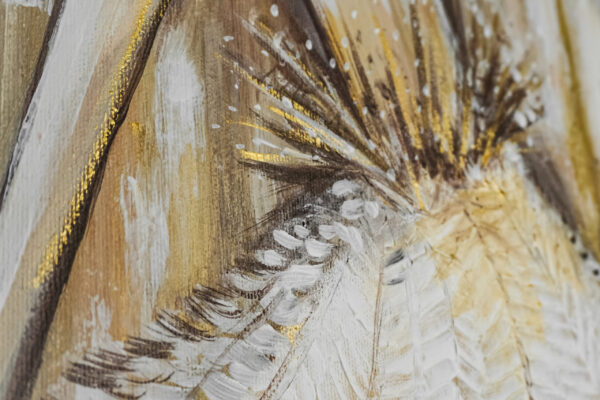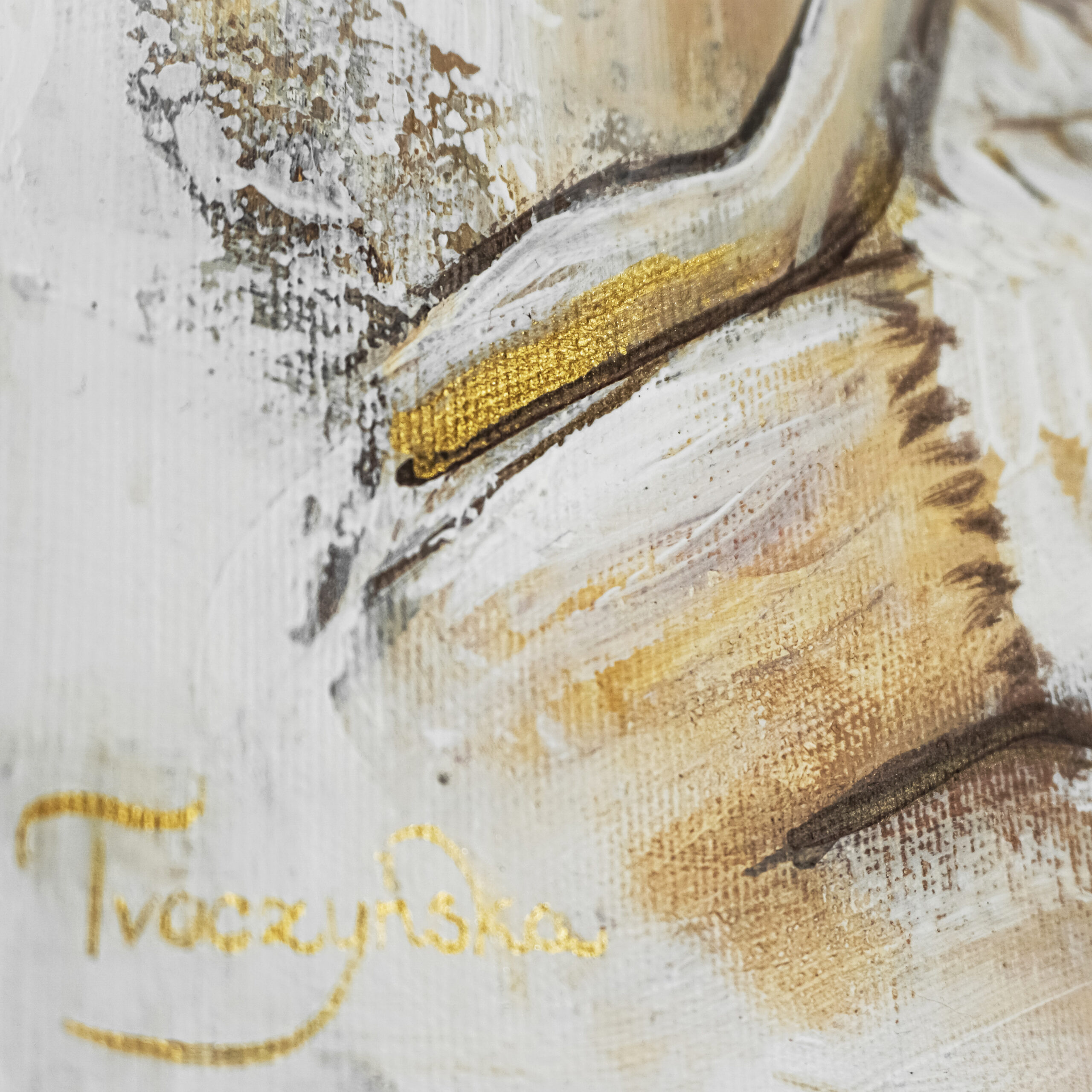Obraz „Kobieta w odcieniach złota” wykonany farbami akrylowymi na płótnie bawełnianym.